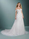Soft and dreamy with a sultry twist. The soft trumpet silhouette hugs your curves. The delicate lace appliqués over sheer tulle are truly romantic. Creating a cold shoulder, the long flutter sleeves are detachable. The illusion back is as breathtaking as it is seductive with godets that creates an ethereal...
