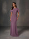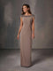 A-line mikado gown with sweetheart neckline and pleats on skirt sides decorated with beaded motifs on waist.
