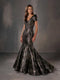 Stretch crepe slim gown with off the shoulder, clean bodice, placed beading and a draped skirt with a slit.
