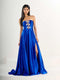 This gown stuns with a strapless sweetheart neckline and a sheer beaded corset bodice that highlights the waistline with elegant vertical embellishments. The glittering design draws the eye inward for a slimming, cinched effect. The shimmer jersey fabric below the waist hugs the hips beautifully with precise ruching at the side, creating a flattering drape that leads into a thigh-high slit, showing just the right amount of leg for a confident, striking look. From the back, the gown continues its sultry glamour with a lace-up corset closure, adding both style and adjustable support. The bodice dips gracefully into the lower back, while the skirt softly flows out into a sweep train, creating a smooth, statuesque silhouette. The shimmer jersey’s natural stretch and shine follow the body’s curves flawlessly, ensuring you look stunning from every angle.