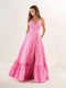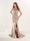 Fitted corset-curvy style bodice with intricate beadwork and shimmering embellishments. It features a flattering sweetheart neckline with supportive straps. Floor-length skirt, fully pleated A-line skirt with a luminous, metallic effect that flows elegantly with movement. Modest scoop back with a smooth finish, allowing the sparkle and pleating to shine.