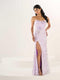 Strapless sweetheart A-line with floral with 3D organza floral applique.
