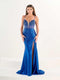 This curve-hugging gown dazzles in shimmer jersey, offering the perfect blend of glam and grace. The deep V-neckline with illusion mesh insert adds drama and elegance, while the bodice is adorned with delicate beaded embellishments that cascade into radiant linear patterns. Subtle floral detailing at the waist highlights the hourglass...