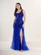 With a removable shoulder bow, this dramatic draped jersey gown will turn heads.