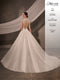 Strapless floral lace applique bodice with stretch crepe fit & flare skirt and removable stretch crepe overskirt.