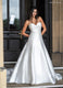 Romantic and refined, this ivory champagne mermaid gown dazzles in glitter tulle with delicate applique and beading. The off-shoulder neckline highlights the décolletage, while the fitted silhouette flows into a graceful flared skirt and chapel-length train. Finished with a detachable lace choker for added drama, this gown is perfect for...