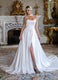 Grace every aisle in this sleek ivory mermaid gown, sculpted in luxurious Mikado with a strapless neckline and structured fit. A cascading bow at the back unveils a floral tulle train adorned in delicate appliqué and soft beading. Elegant yet whimsical, this gown is perfect for modern brides seeking timeless romance with a touch of fairytale charm.