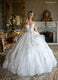Sleek and graceful, this ivory gown stuns with its stretch crepe silhouette and flattering V-neckline. A soft organza bow cinches the back, flowing into a dreamy lace train adorned with delicate 3D flowers and beading. Perfect for a romantic ceremony or elegant reception, it blends modern minimalism with enchanting detail.