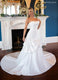 Grace meets grandeur in this ivory A-line gown, adorned with embroidered lace, glitter tulle, and delicate beading. The sheer detachable bolero jacket offers timeless coverage with illusion sleeves and button details, while the structured bodice underneath adds modern flair. Perfect for brides who want elegance with versatility on their big...