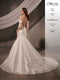 Mock two-piece ball gown in mikado with structured corset and full skirt. Bodice decorated with beaded lace motifs and pearls. Lace up back.