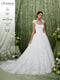 Satin strapless ballgown with placed lace applique with coordinating scarf.